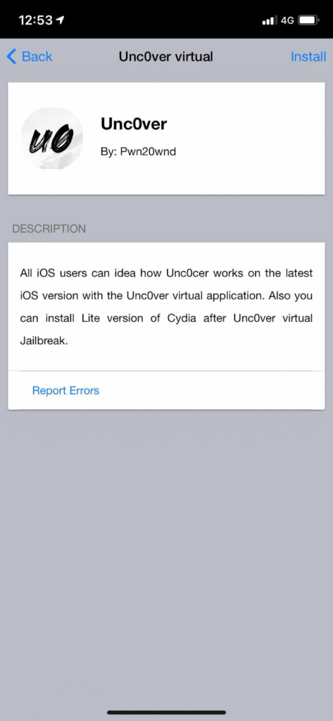 Step 02 – Open the zjailbreak, Go to Jailbreak category, Tap on Unc0ver (virtual) app,then tap install, Allow to download the profile.
